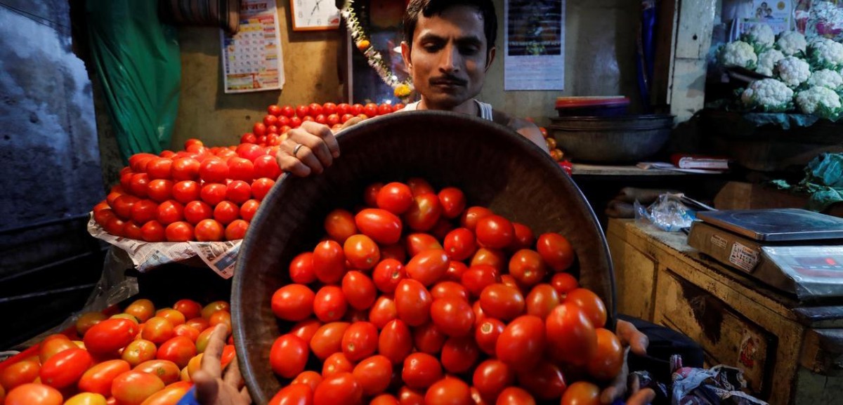 File Photo: A vendor loads tomatoes in a bag for a customer at a wholesale vegetable market in Mumbai, India, March 14, 2018. Photo: Reuters/Danish Siddiqui