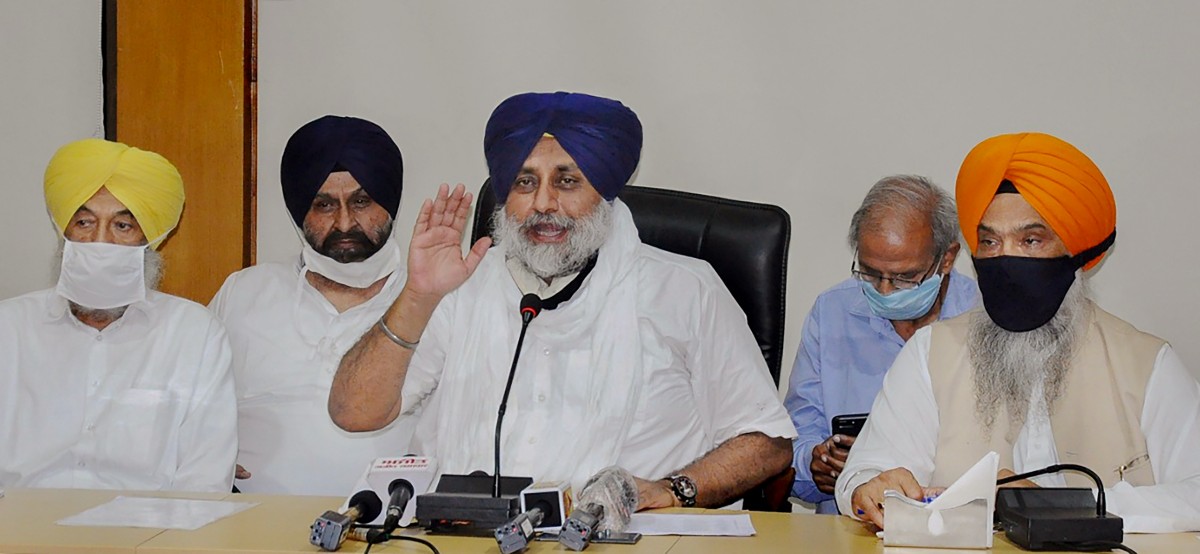 Shiromani Akali Dal President Sukhbir Singh Badal addresses a press conference. Photo: PTI/File