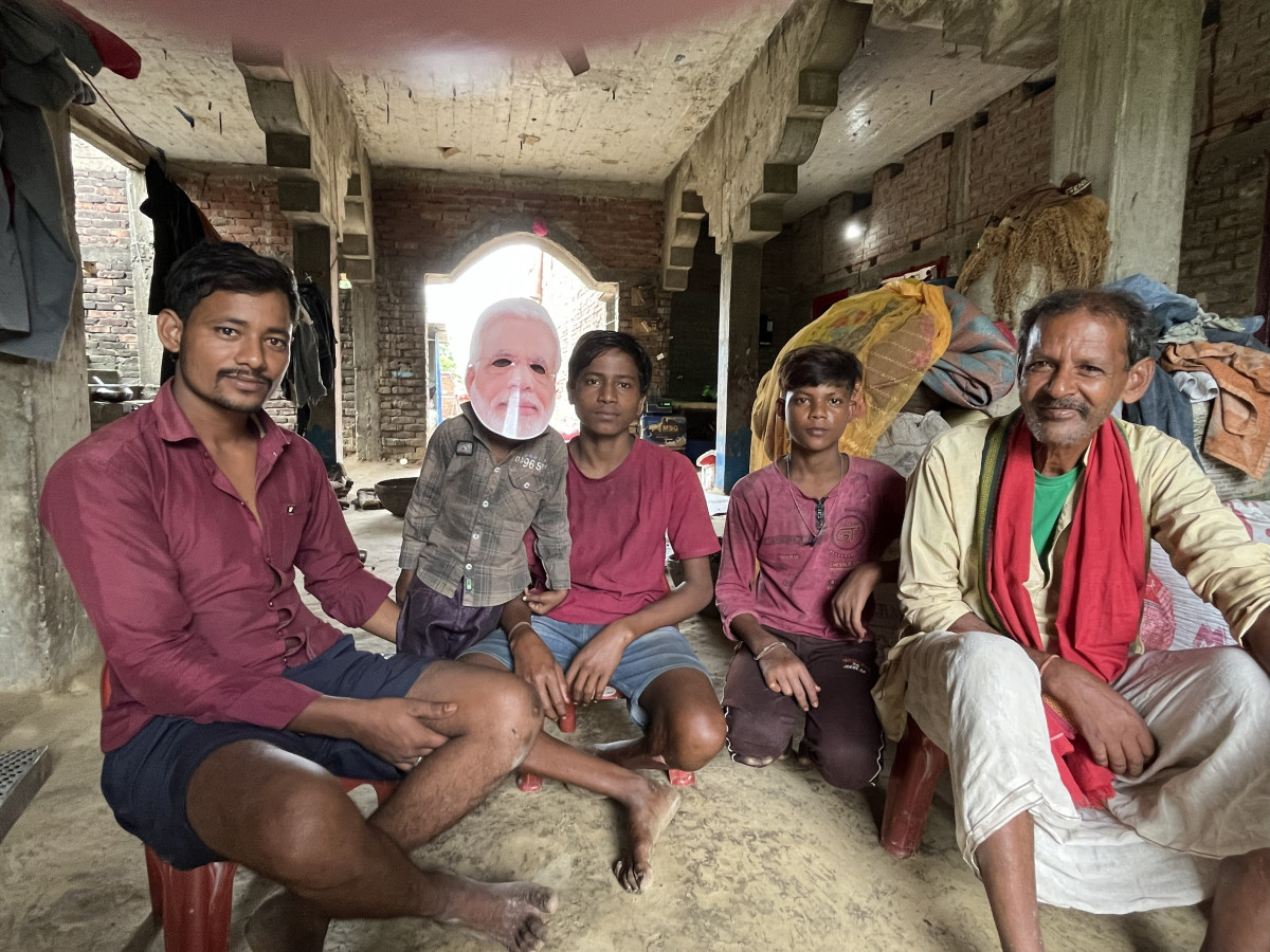 A child wears a mask of Prime Minister Narendra Modi in Tataila, Darbhanga district, Bihar. Photo: Anando Bhakto.