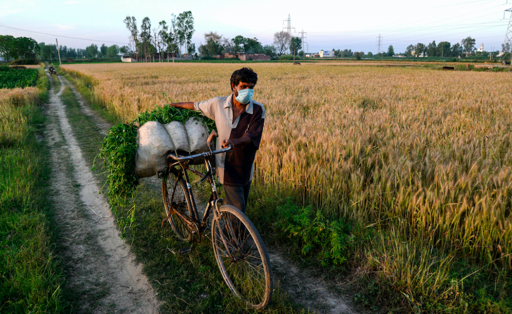 A man carries cattle feed in Jalandhar. Photo: PTI