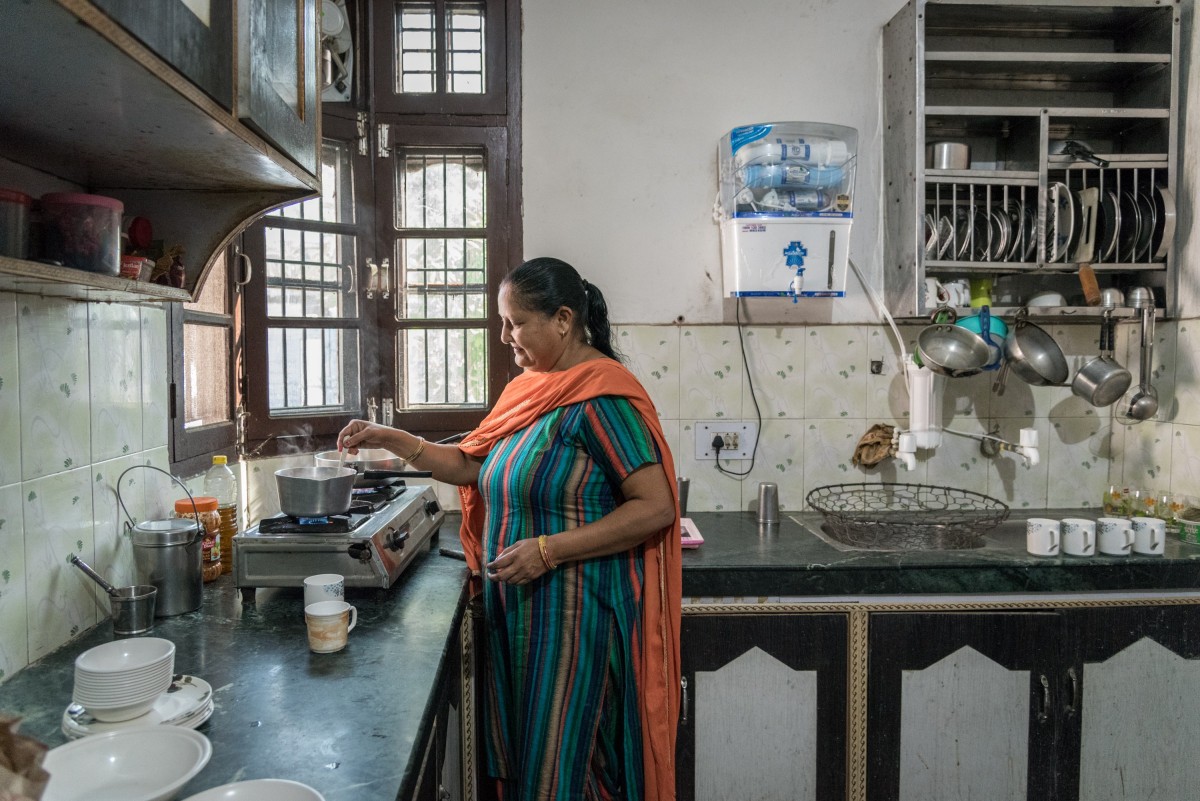Balbir's wife Surinder Kaur making tea at their house in Garhshankar town of Hoshiarpur district. Photo: Stefania Prandi