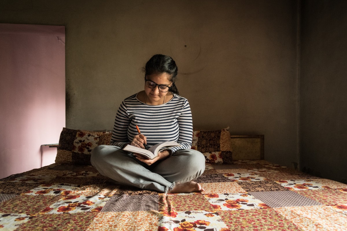 Balbir's daughter Bhawana studying at their house. A medical student, she will be moving to Canada for higher studies. Photo: Stefania Prandi