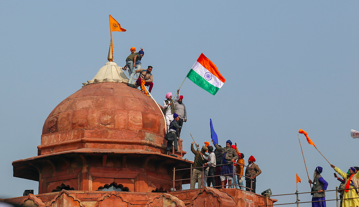 Protestors at the Red Fort on January 26. Photo: PTI.