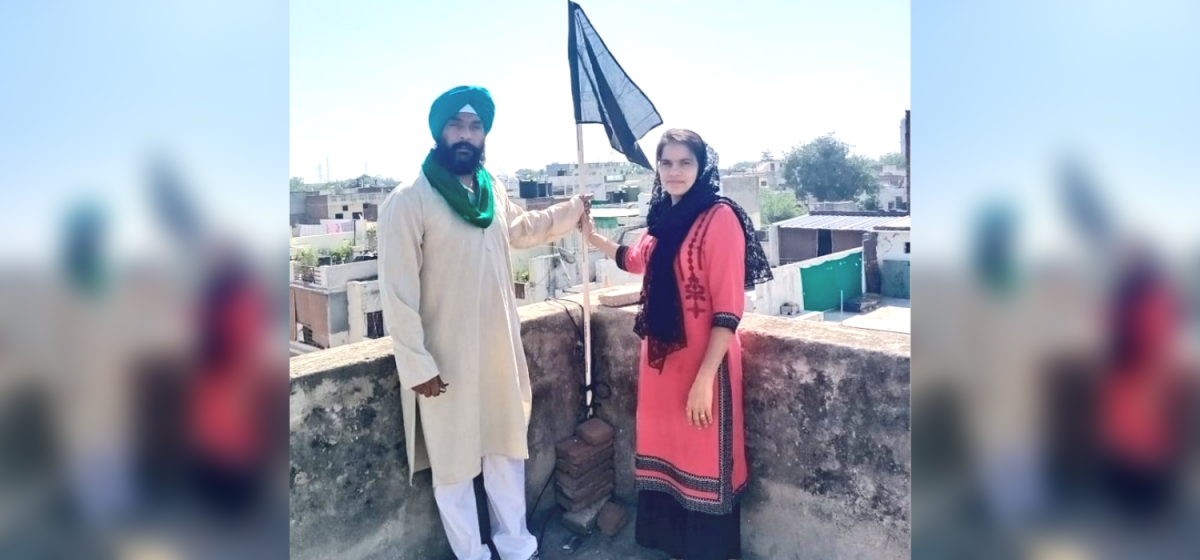 Protesters raise black flags on their homes to support the national black day call given by farmers' unions on May 26. Photo: Twitter.