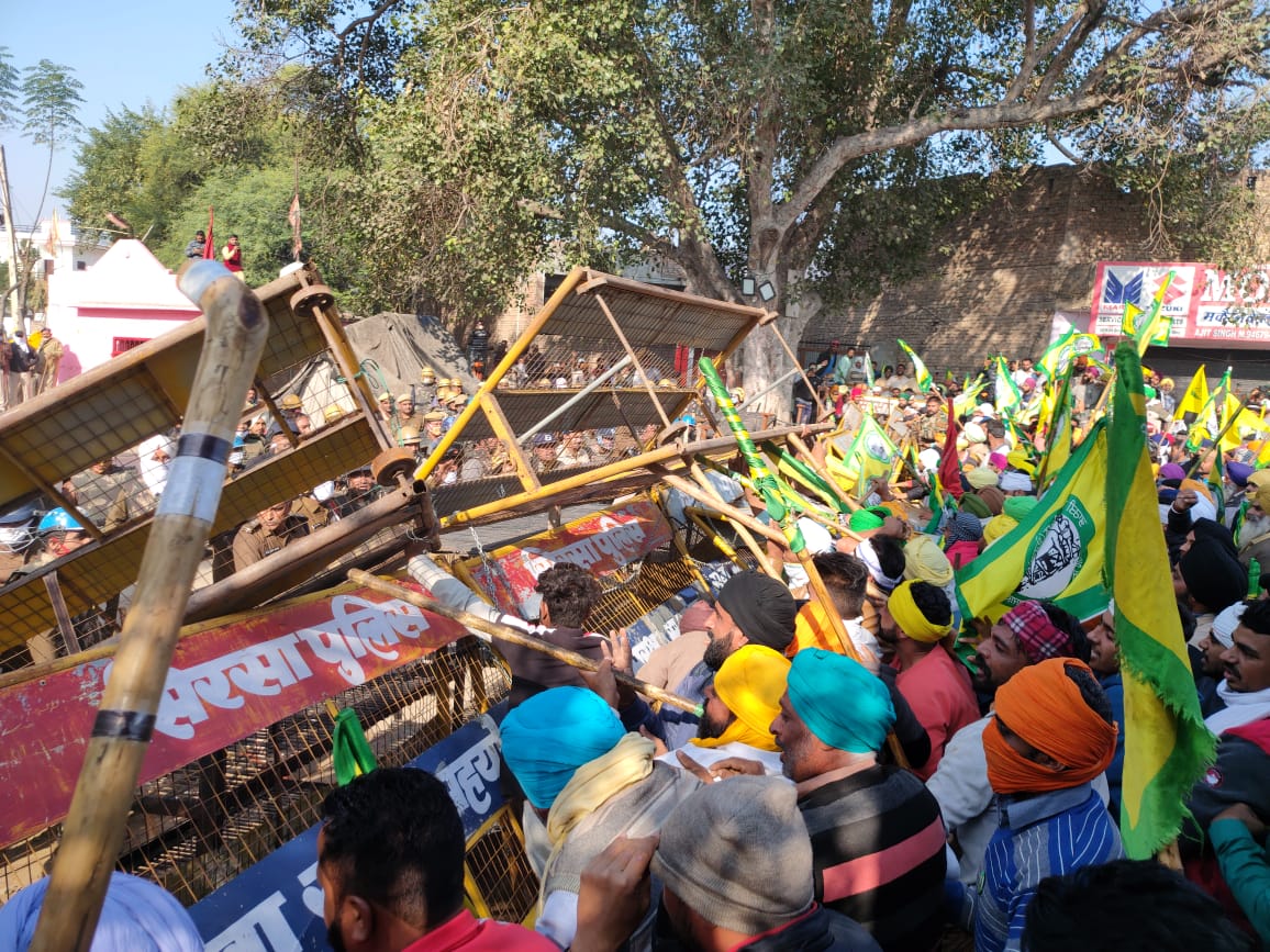 File photo of protesting farmers breach the police barricades at the Mandi Dabwali area near the Punjab-Haryana border. Photo: By arrangement