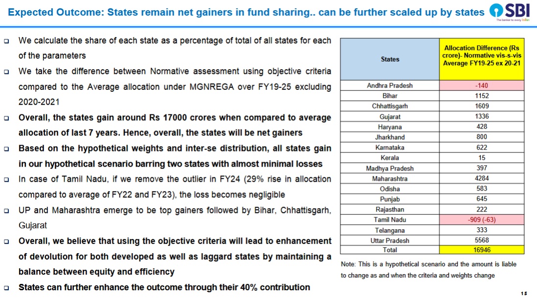 The table presented by SBI's research arm on page 15 of its report, published soon after VB-G RAM G gained the President's assent, both taking place in December 2025. Source: https://sbi.bank.in