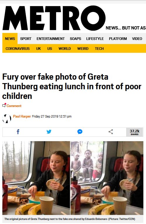 It also states that Eduardo Bolsonaro, son of Brazilian President Jair Bolsonaro, had shared the morphed picture of the climate activist.
