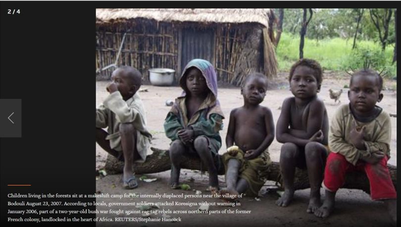 The photograph of the children was found in a Reuters article dated August 23, 2007. It was shot by Reuters photographer Stephanie Hancock in Africa. The article is about people who fled villages and moved to the forests during the Bush War in Central Africa.