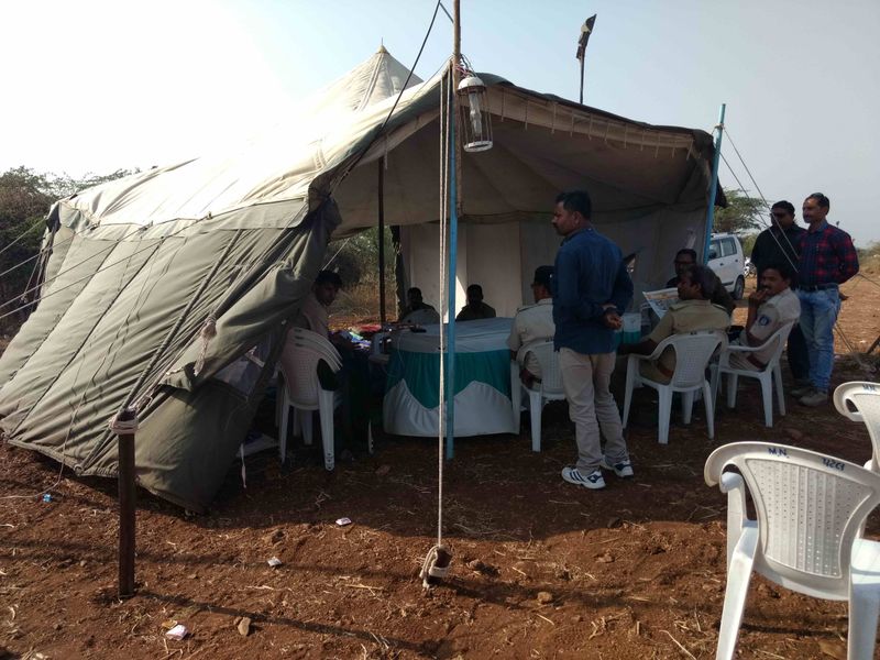 The police tent set up on agricultural land. Credit: Damayantee Dhar