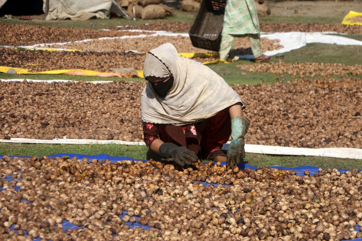 Walnut being processed after being harvested. Photo: Irfan Amin Malik.