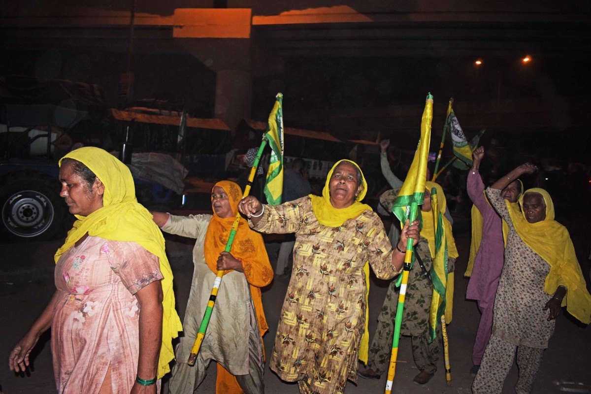 Women farmers from Punjab leading the protest march at the Singhu border. Photo: Jignesh Mistry