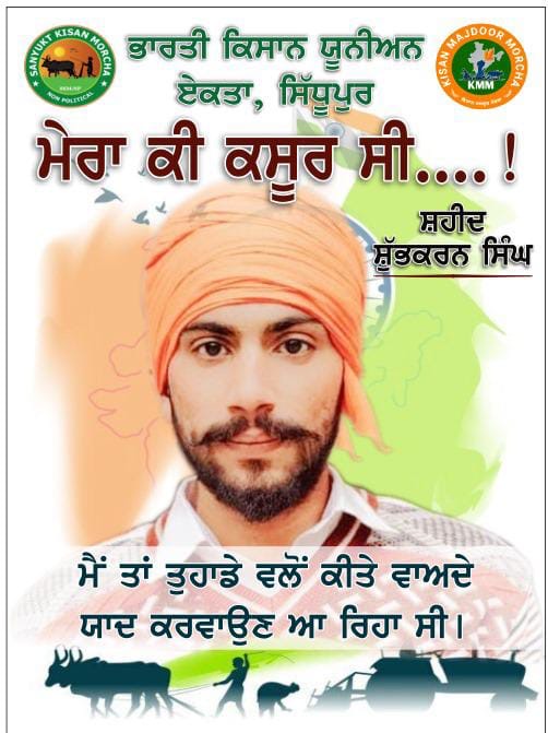 The SKM (non-political) and KKM have dedicated their poster to young farmer Shubhkaran Singh, who was allegedly shot dead by security forces at Khanauri border while farmers were protesting for the legal guarantee of Minimum Support Price (MSP) on February 21.