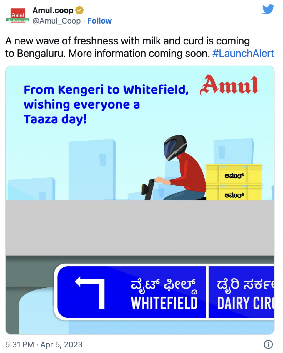 But a Twitter advertisement by Amul on April 5, declaring the arrival of fresh Amul milk and curd in the Bengaluru market, has triggered talk on the matter and exposed what appears to be the 'double engine' BJP government's agenda.