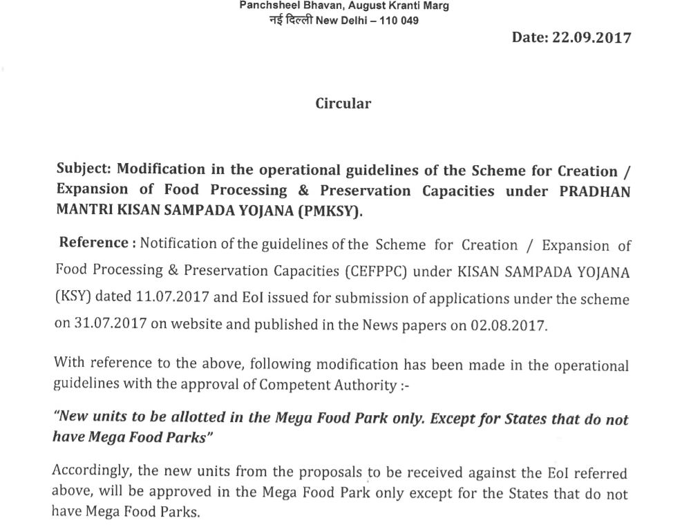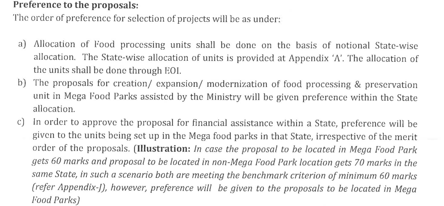 Secondly, when the units being set up in mega food parks were already getting preference over units being set up at other locations, what was the need to issue a new circular that restricted it only to mega food park units?