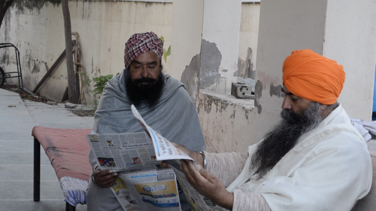 Avtar Singh Niamian and his friend Gurpreet Singh read the newspaper. Photo: Pawanjot Kaur