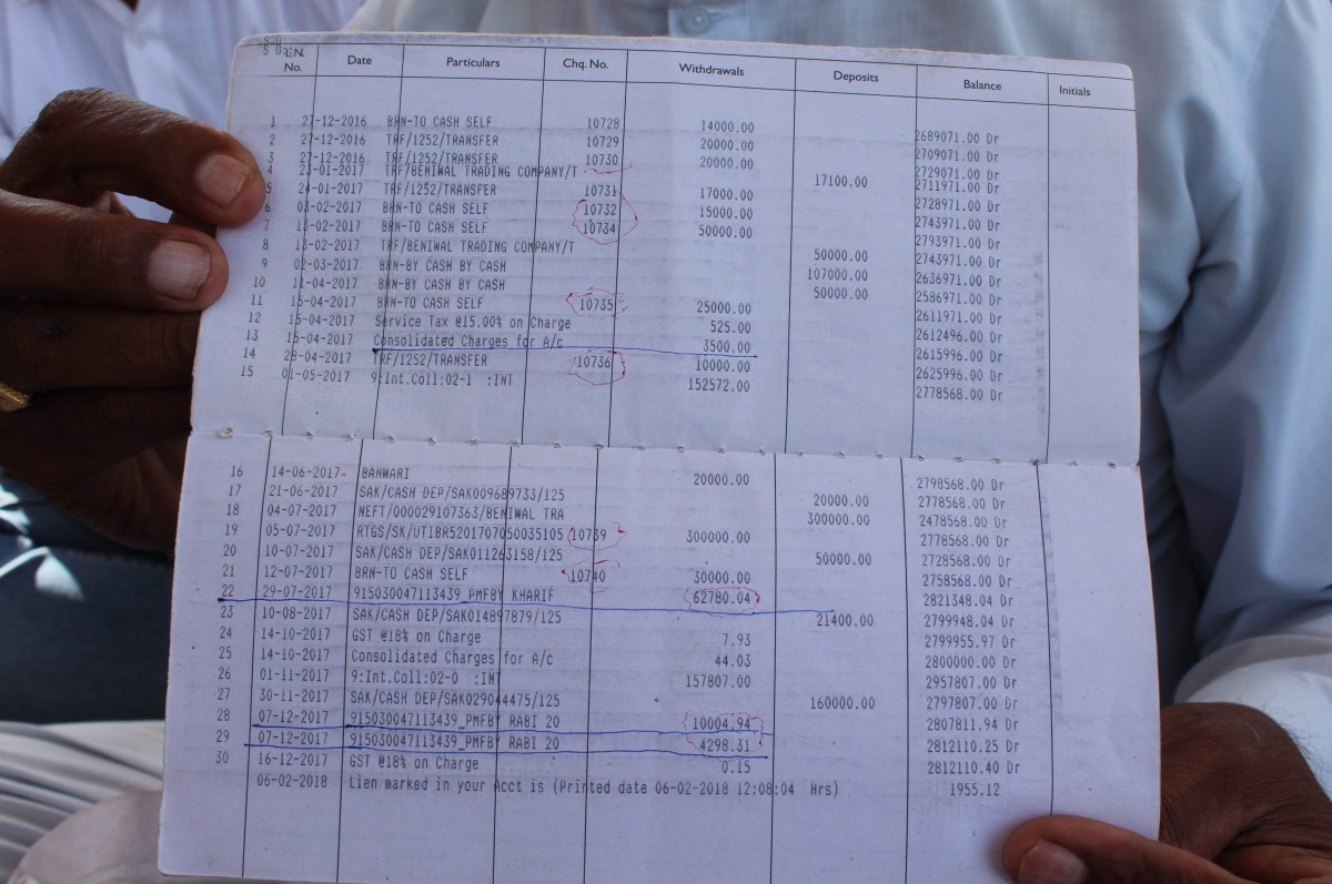 Axis Bank did the same thing with Banwari. As per the land record accessed by The Wire, he has a landholding of approximately 30 hectares, of which 21 hectares is rain-fed and so cannot be used for cotton cultivation. The other 9 hectares is being irrigated by the canal system.