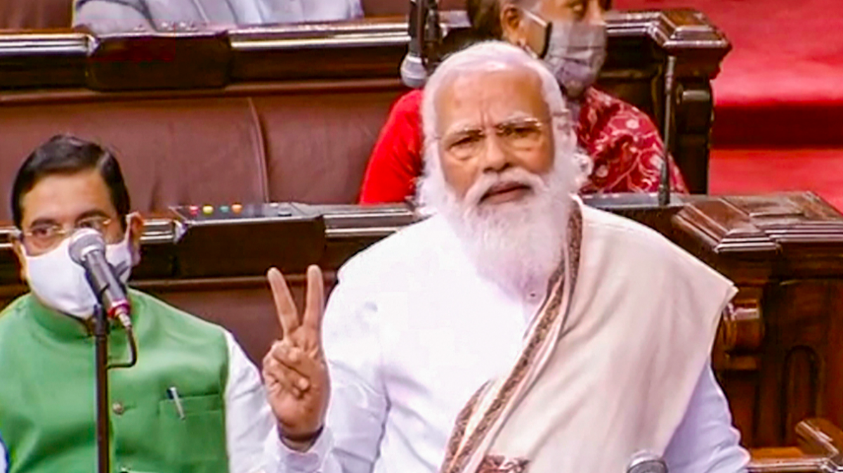 PM Narendra Modi in Lok Sabha on February 8, 2021. Photo: PTI