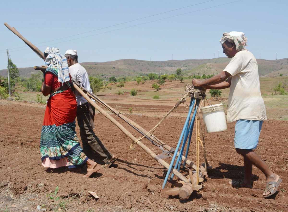Farmers sow paddy during the lockdown in Maharashtra's Sangli. Photo: PTI