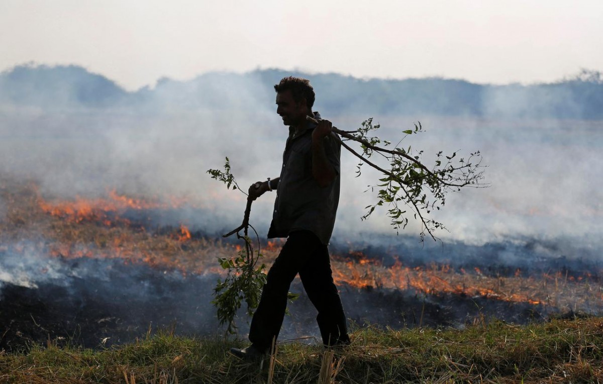 A farmer burns paddy waste stubble in a field on the outskirts of Ahmedabad. Credit: Reuters