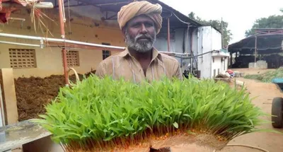 Jaikumar (47), a dairy farmer from Silamarathupatti, Theni district swears by hydroponic farming during drought season. He has been using it for nearly seven years. Setting it up costs around Rs 36,000.
