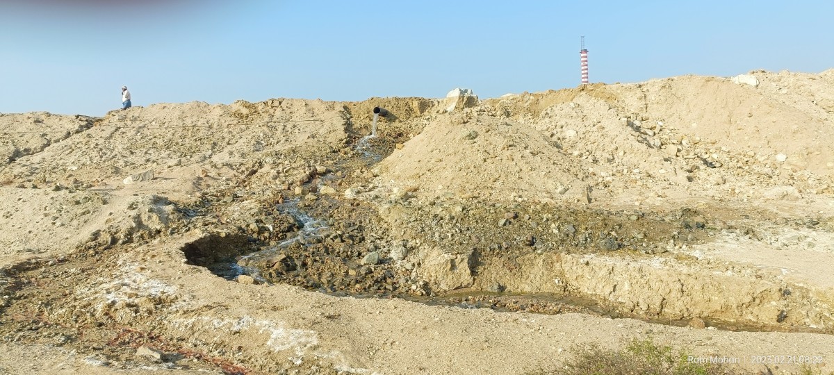One of the huge pits in the company premises that will store water and sludge. Photo: G. Ram Mohan