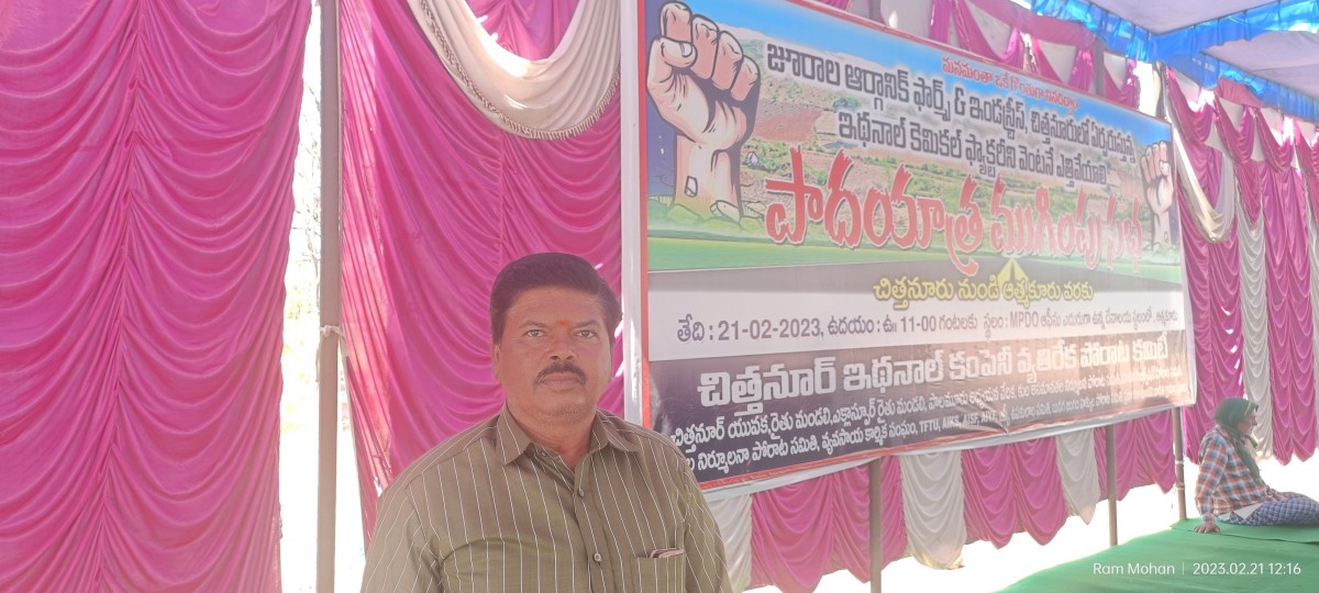At a public meeting of the protesters on February 21, 2023, held under the aegis of Chittanoor Ethanol Company Vyatirekha Porata Committee, Surya Prakash from Chittanoor village explained that the land on which the ethanol plant is coming up belongs to Chittanoor.