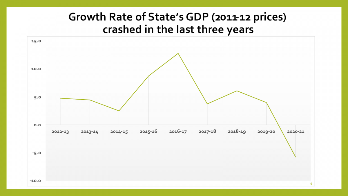 Manufacturing showed negative growth of 3.34% during the Adityanath government as compared to 14.64 % during the previous regime.