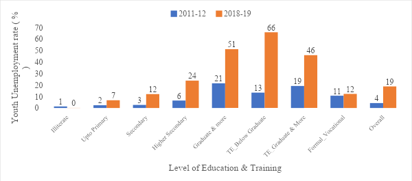 Figure 3: Incidence of Youth Unemployment by Education and Training in Uttar Pradesh, 2012 & 2019