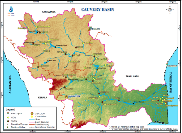 Map of the Kaveri basin. Credit: Water Resources Information System of India.