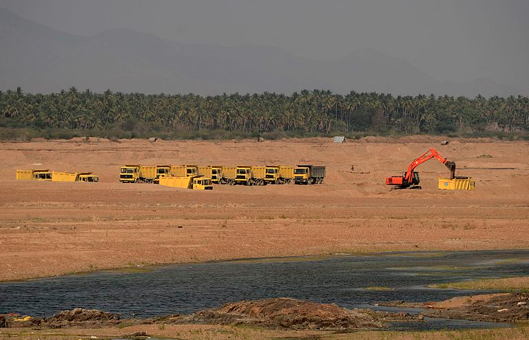 Sand being mined from the Kaveri bed. Credit: P. Jeganathan / Wikimedia Commons.