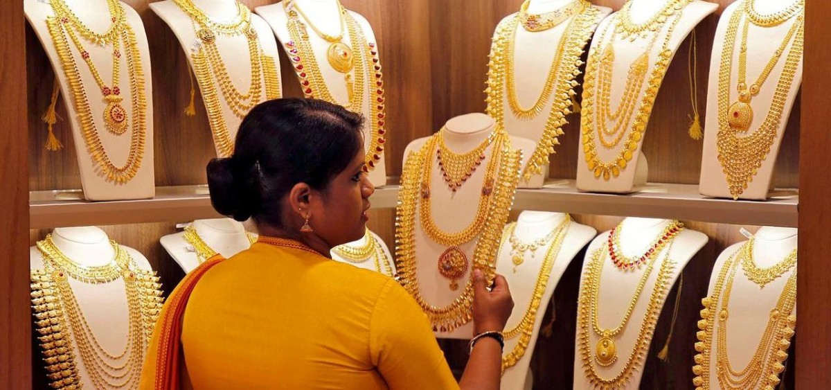 A saleswoman picks gold necklaces to show to a customer inside a jewellery showroom on the occasion of Akshaya Tritiya, a major gold buying festival, in Kochi, India, May 7, 2019. Photo: Reuters/Sivaram V/File Photo
