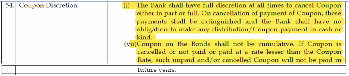 Secondly, even if the Supreme Court agrees with the Bombay high court judgement, the AT1 bondholders will not receive the past due interest (as the coupon is non-cumulative) till the bank declares a dividend on equity shares. This may take some years and as the bonds are perpetual, it is the bank's discretion to exercise the call option.