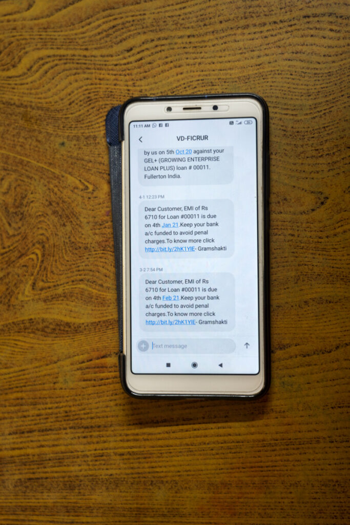 MFI automatic deduction notification by SMS. Photo: Chinar Shah