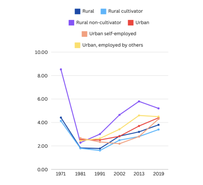 Debt-to-Asset ratio trends for rural and urban India. Source: AIDIS reports.