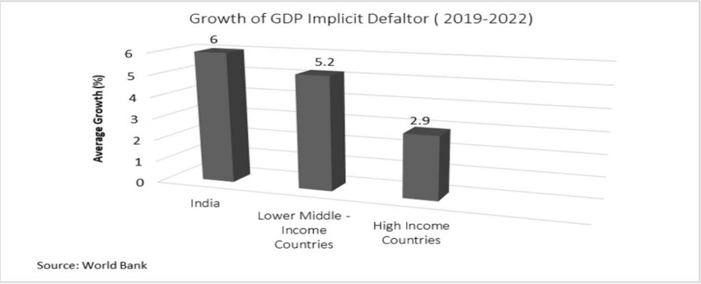Many countries use the GDP deflator, also known as the implicit price deflator, to measure inflation. This measure reflects the ratio of the value of goods and services an economy produces in a particular year at current prices to those in the base year, capturing the true economic scenario as it is not confined to a fixed basket of goods but reflects changes across the entire economy. An eye-opening analysis by the Financial Accountability Network, titled 'Inflation' reveals a surge in India's GDP implicit deflator, skyrocketing from 2.4% in 2019 to 8.2% in 2022, averaging 6%. This rate is significantly higher than that of lower middle-income countries (5.2%) and high-income countries (2.9%).