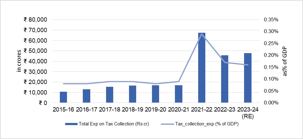 Adding to the burden on the populace is the rise in GST, which has increased from 23% of total tax revenue in FY 2017-18 to 28% in FY 2023-24. Moreover, the introduction of GST has led to a sharp increase in tax collection expenditures. The total expenditure on tax collection was around Rs 10.6 thousand crore in FY 2015-16, which has ballooned to around Rs 47.7 thousand crore in the revised estimates for FY 2023-24. This problem could have been alleviated with the wealth tax, but the government abolished it in favour of the ultra-rich.
