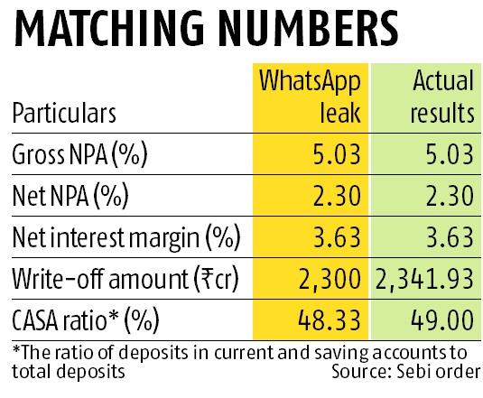 SEBI said it had not yet been able to ascertain the source or origin of the leak, but added it could be prima facie attributable to the inadequacy of the processes, controls and systems at the bank.