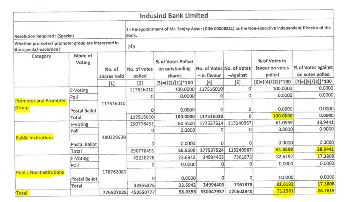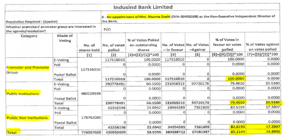 Votes Polled by IndusInd Bank’s Shareholders on the Resolutions. Source: BSE