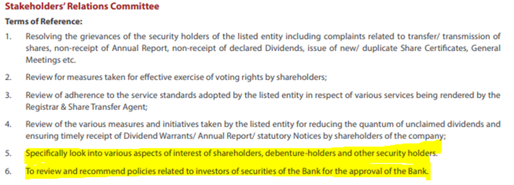 As the name suggests that the committee is tasked with the concerns of stakeholders, it needs to to broaden its role to also include depositors, employees, regulators, proxy advisory firms and analysts.