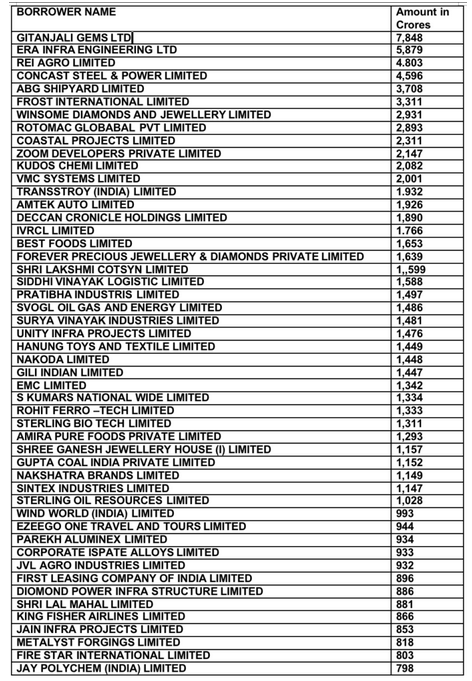 ABG Shipyard (Rishi Agarwal), Winsome diamonds (Jatin Mehta), and many of the other wilful defaulters are close to the corridors of power. Some are already abroad. ABG Shipyard’s Agarwal, who cheated 28 banks to the tune of Rs 23,000 crore, can now have a compromise settlement.