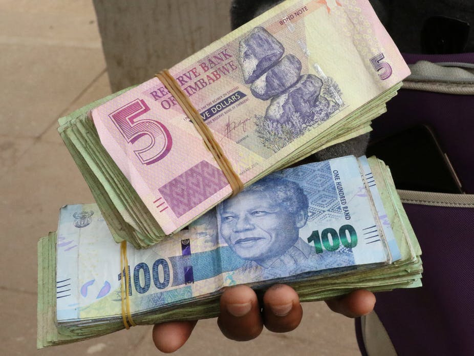 An illegal money changer holds bond notes outside a bank in Zimbabwe’s capital Harare. Credit: Reuters/Philimon Bulawayo