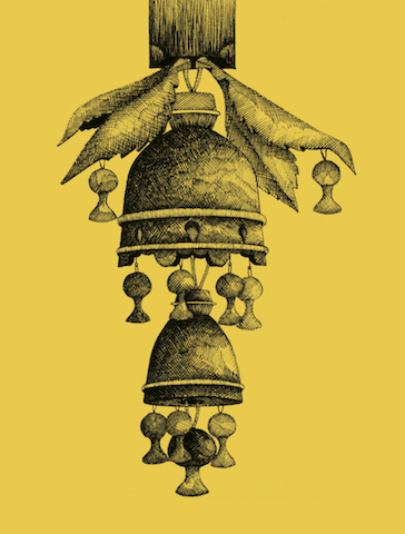 From 'Architectural Ornamentation in Shrines & Mosques of Kashmir'. Pen and ink illustration of wooden pendant at Khanqah-i-Naqshband, built in the 17th century. Drawing: Syed Basharat Ali