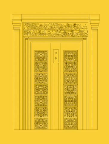 From 'Architectural Ornamentation in Shrines & Mosques of Kashmir' (Roli Books, 2021). CAD drawing of the wooden door and calligraphy in stone at Madin Sahab, built in the 15th century. Drawing: Taha Mughal