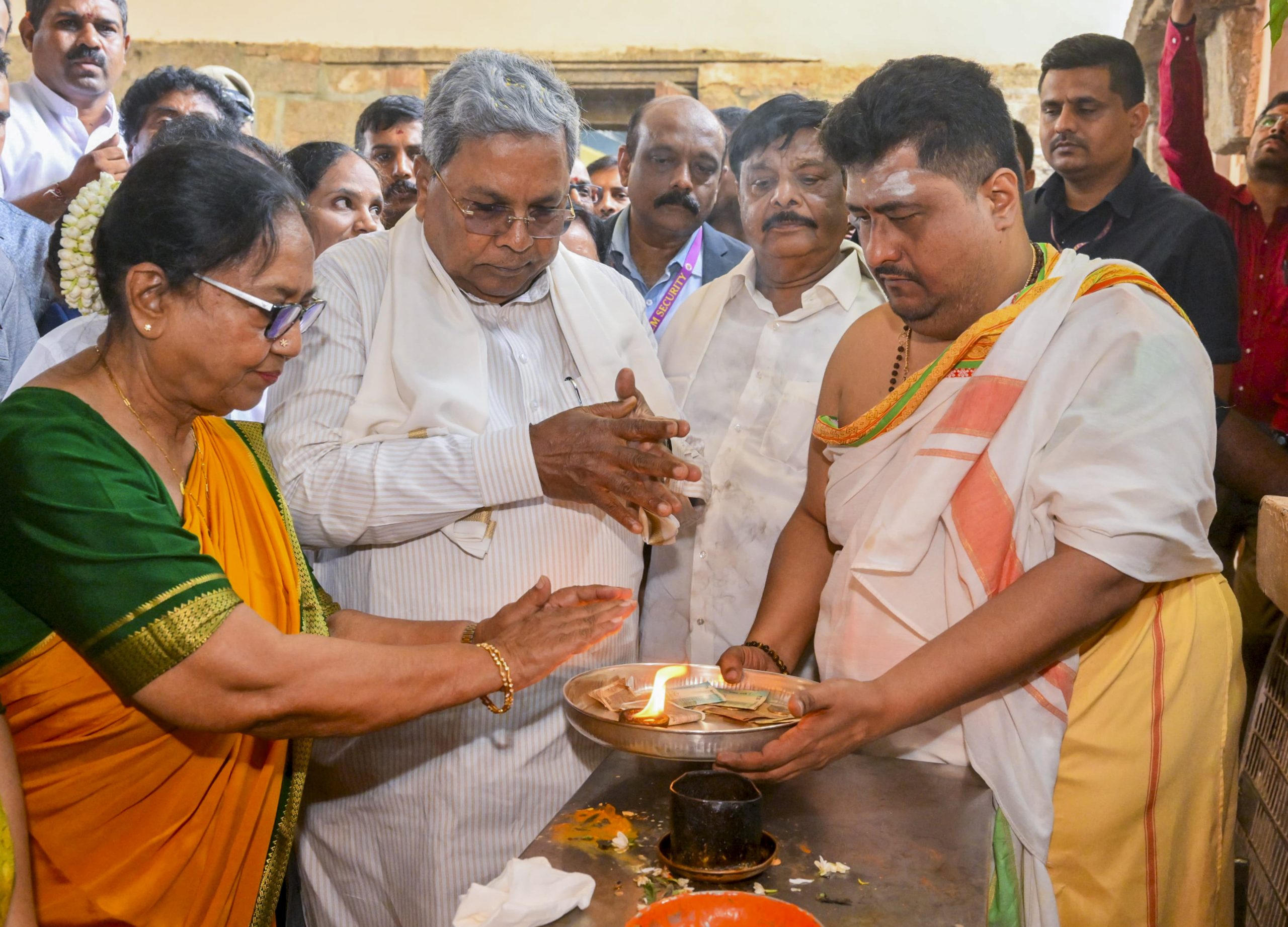 She also visited the Chamundeshwari temple earlier and offered prayers to the goddess, along with Siddaramaiah.