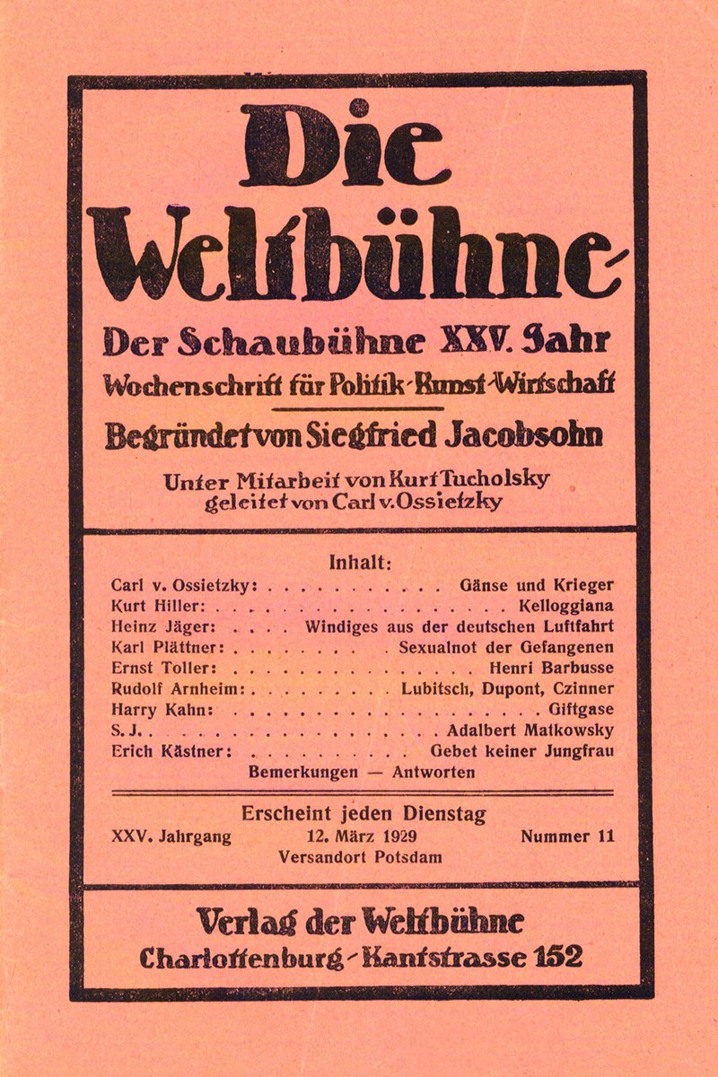 Die Weltbuhne (The World Stage), a left-wing journal was one of the