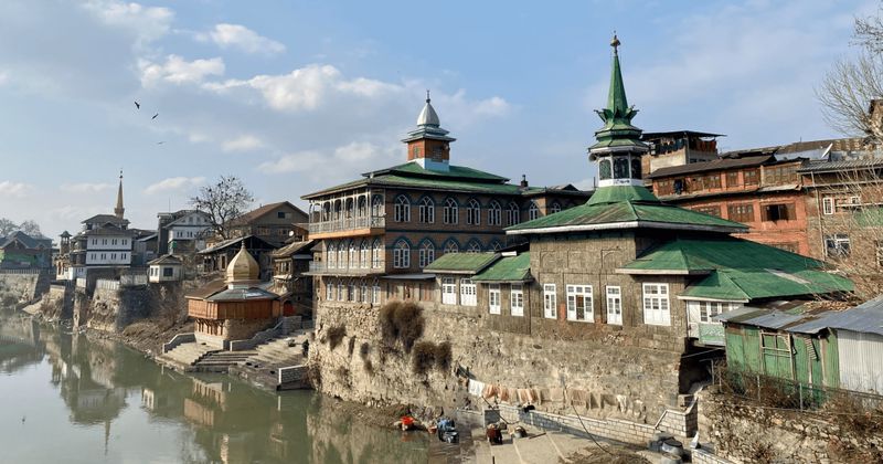 In downtown Srinagar, there’s a red-brick mosque with sloping green roofs overlooking the muddy waters of Jhelum. Its tall spire is made of small wooden slats, and crowned with a crescent-shaped brass finial that soars out skywards. This is where Islam treaded one of its first tentative footsteps in Kashmir in the early 14th century.