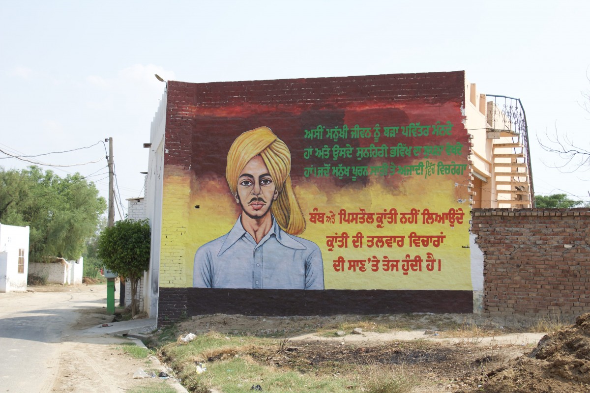 Mural of Bhagat Singh with a quote that reads: "Bombs and pistols do not make a Revolution. The sword of Revolution is sharpened on the whetting-stone of ideas." Photo: Kudrat Wadhwa