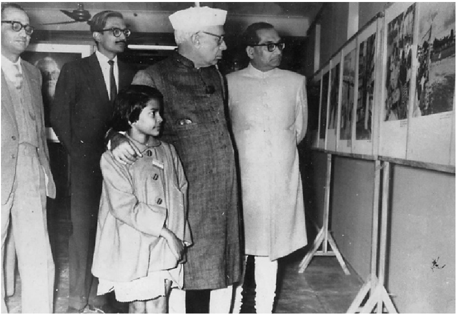 A young Chandrima Shaha at an exhibition of her father Shambhu Shaha’s photographs of Rabindra Nath Tagore (1961) in Delhi with Prime Minister Jawaharlal Nehru who inaugurated the show. Anil Chanda, former secretary of Tagore and then deputy home minister is standing with Nehru. Photo: Special Arrangement