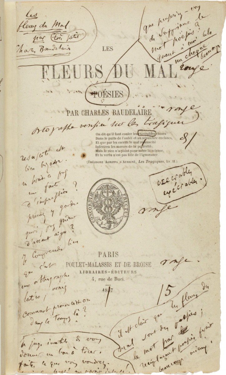 The first edition of Les Fleurs du mal with author's notes. Photo: Gallica Digital Library/Wikipedia Commons