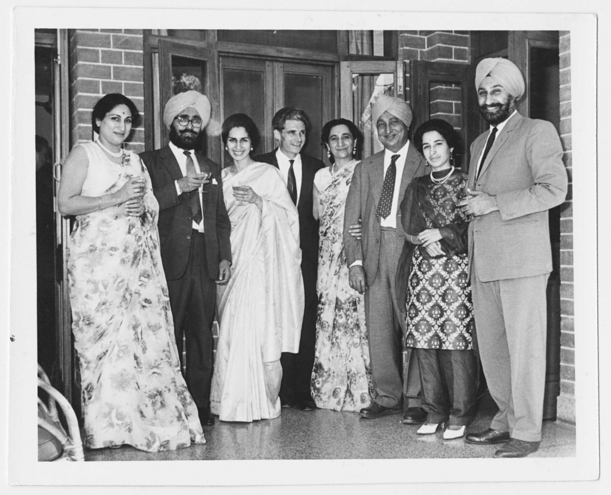 Dip and Charles celebrate their wedding, pictured with her siblings and their spouses – Anup and Jagtar, Amarjit and Bhagwant, Satwant and Priti. Photo: Special arrangement
